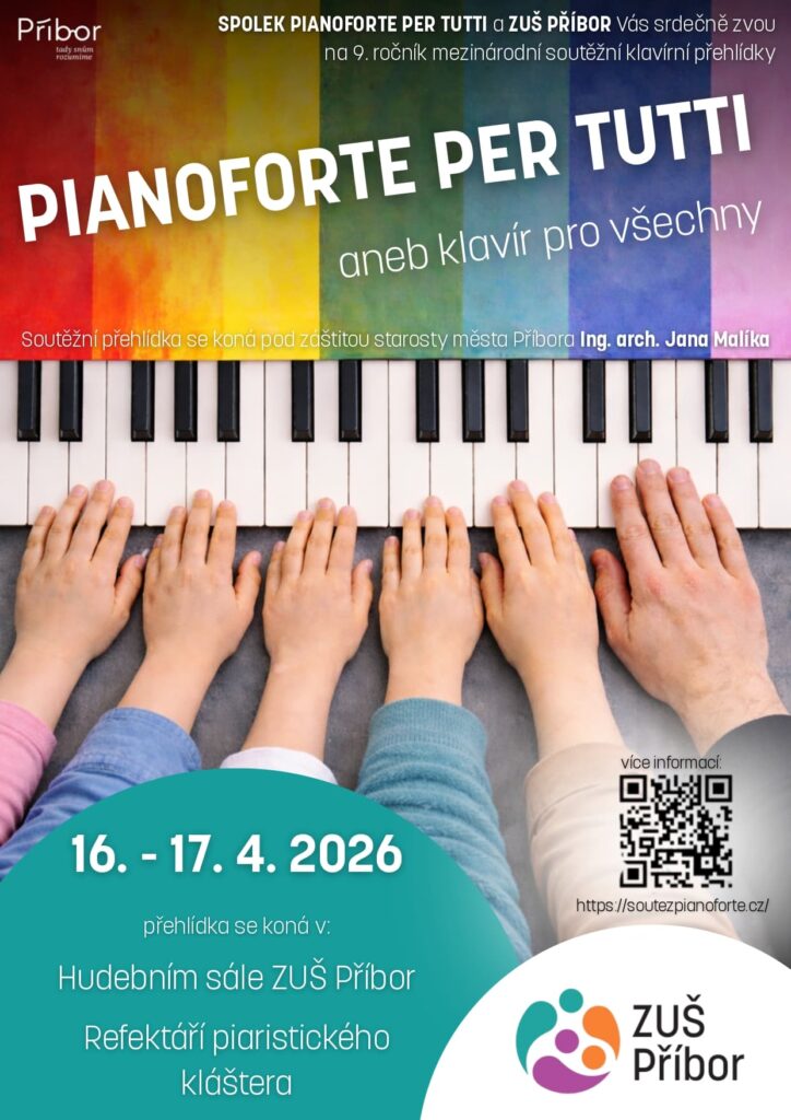 Přijměte, prosím, pozvání na již 9. ročník mezinárodní soutěžní klavírní přehlídky, která se bude konat v prostorách naší školy a v refektáři piaristického kláštera. Této soutěže se zúčastní 170 talentovaných dětí z celé republiky, Slovenska a Polska. Vstup je volný, soutěž proběhne ve čtvrtek 16. a v pátek 17. dubna od 8 do 20 hodin. Budeme se moc těšit na shledání.